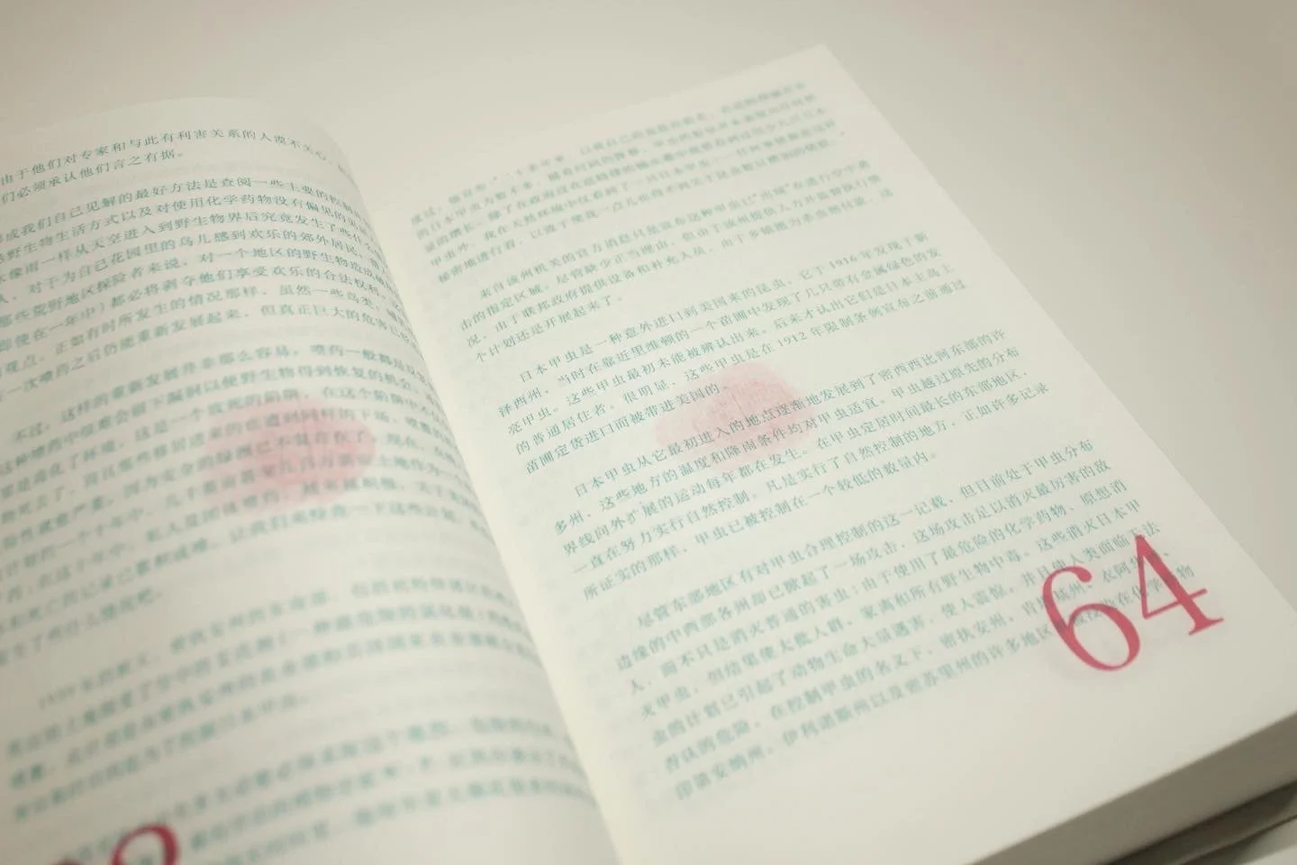 The design of Silent Spring delves into the environmental damage caused by human overreliance on pesticides. Utilizing peach-colored stains, rice paper, and innovative page number designs, it vividly portrays the toxicity of pesticides, the fragility of nature, and the gradual impact on living organisms, effectively reflecting the book’s theme and content.
